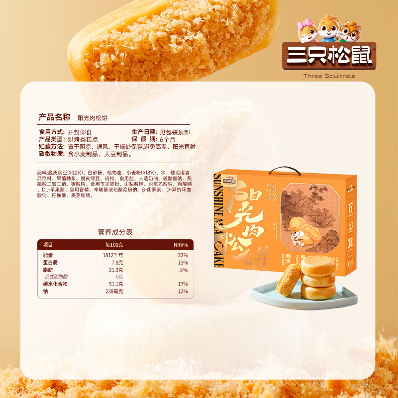 三只松鼠_肉松饼礼盒1200g小吃特产零食传统糕点心过节年货送礼盒