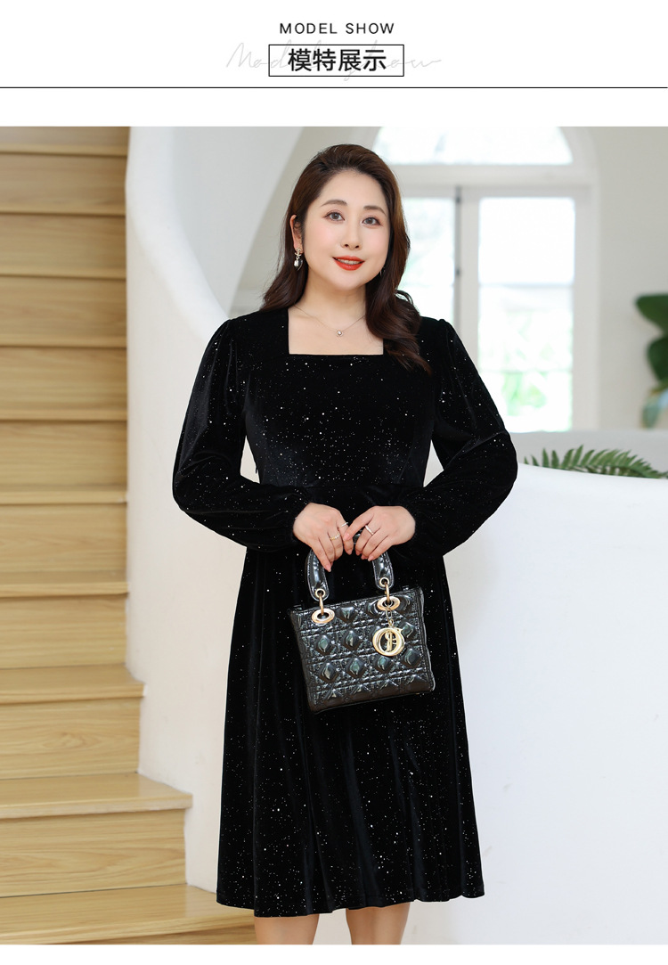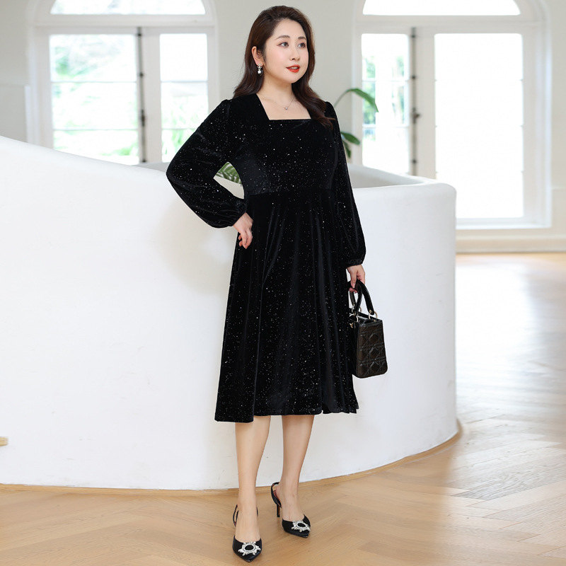 300斤特大码金丝绒长袖连衣裙女秋季200胖mm洋气显瘦加肥遮肚裙子