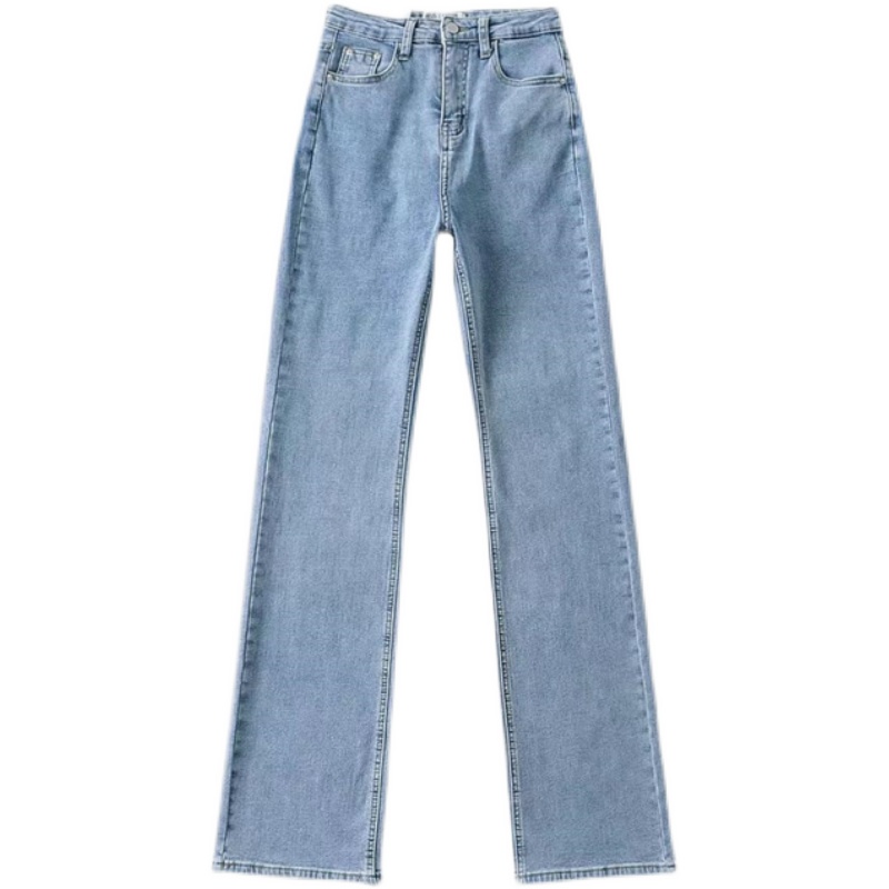 春夏浅蓝色高腰微喇叭牛仔裤女显瘦显臀弹力复古拖地牛仔长裤薄款