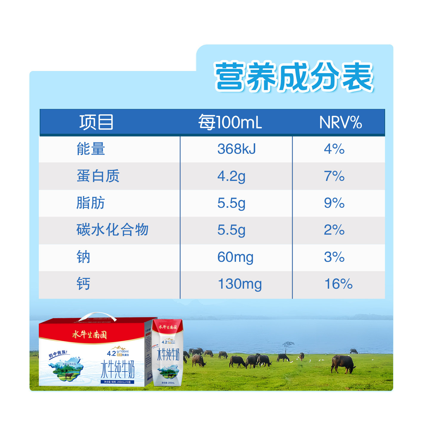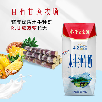 南国乳业 水牛生南国纯牛奶200mL*10盒2件A2β-酪蛋白 全脂水牛奶