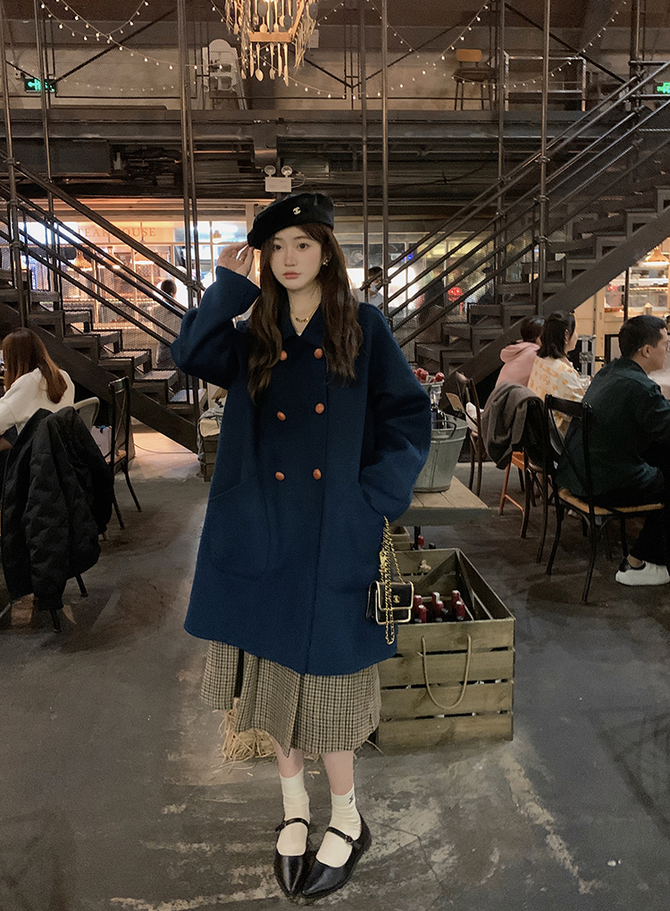 迟伞伞 柿柿如意 羊毛呢外套女中长款气质经典呢子大衣