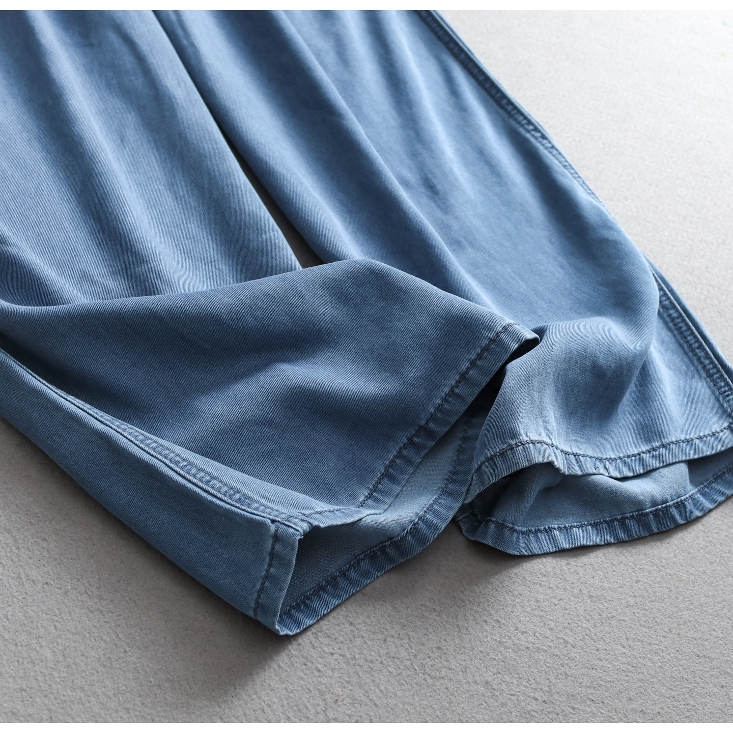 打褶设计休闲利落系腰带柔软舒适宽松直筒裤阔腿裤女裤牛仔裤V382