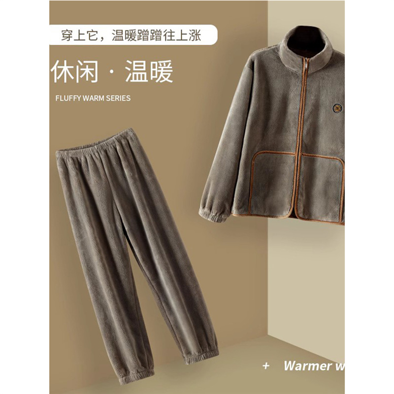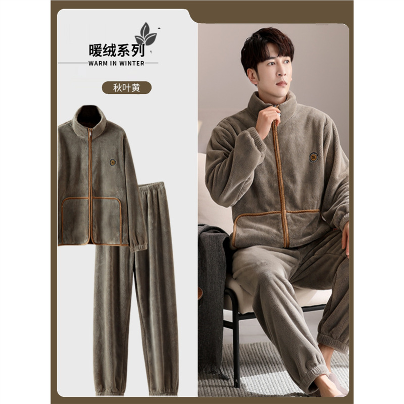冬款睡衣男士珊瑚绒加厚加绒牛奶绒秋冬季法兰绒加大码海岛绒