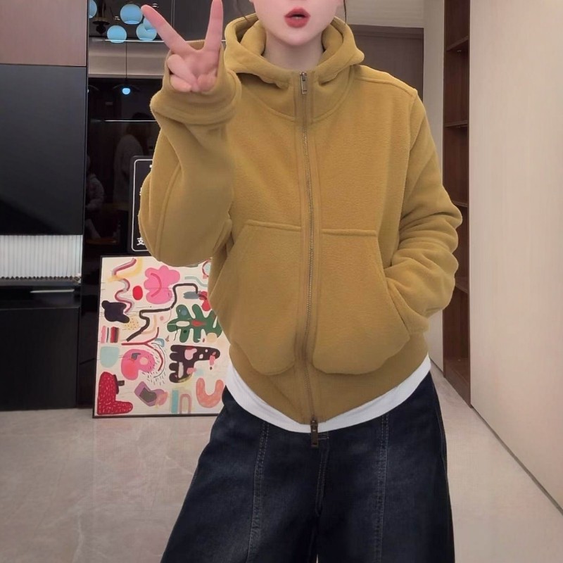 韩版连帽加绒加厚保暖卫衣女冬季2025年新款宽松双拉链开衫外套