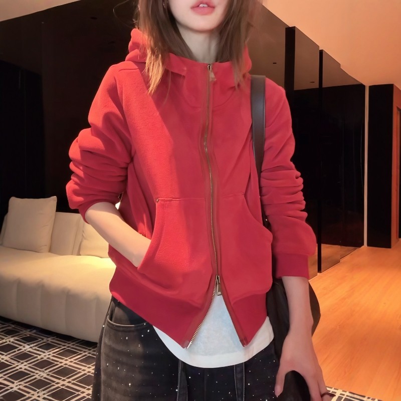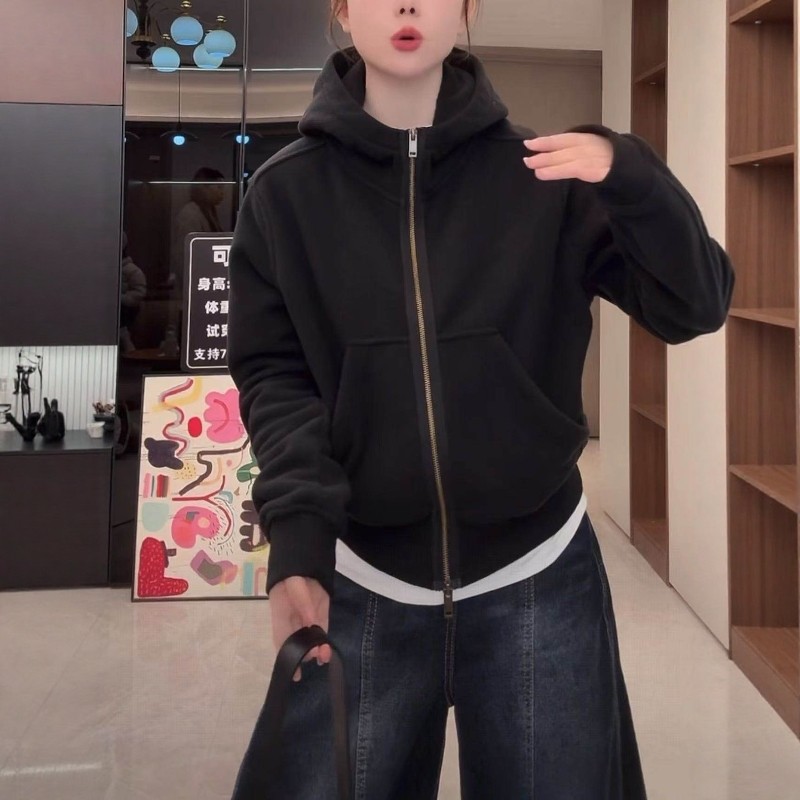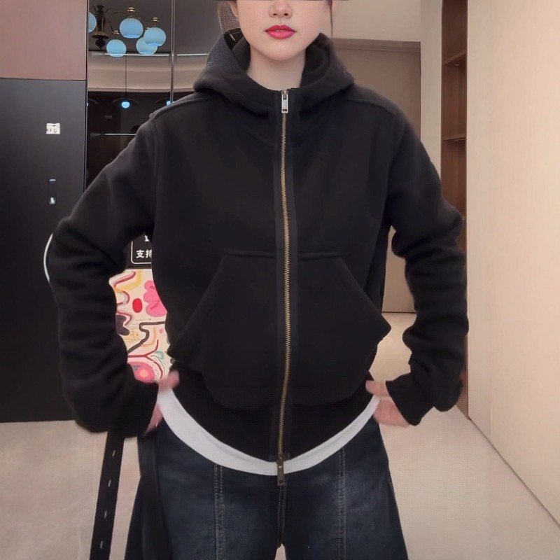 韩版连帽加绒加厚双拉链卫衣女