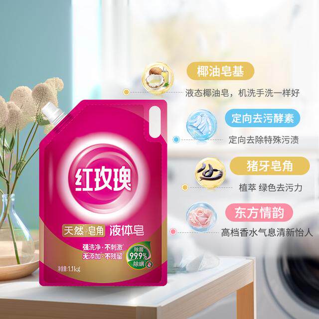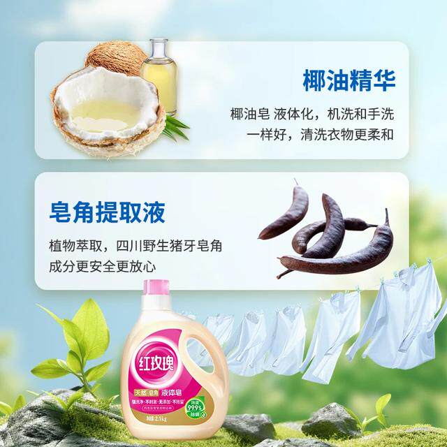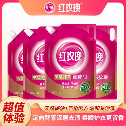 红玫瑰液体皂天然皂角持久留香洗衣液快速强效去污植萃深层去渍