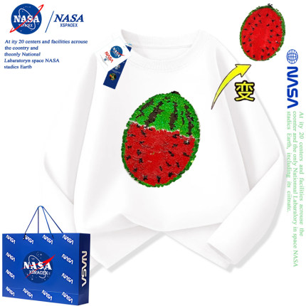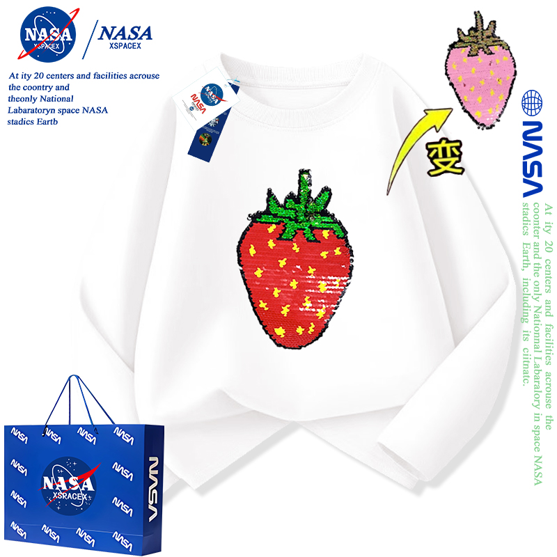 NASA儿童短袖t恤春秋纯棉男童女童草莓西瓜亮片翻转变色长袖上衣