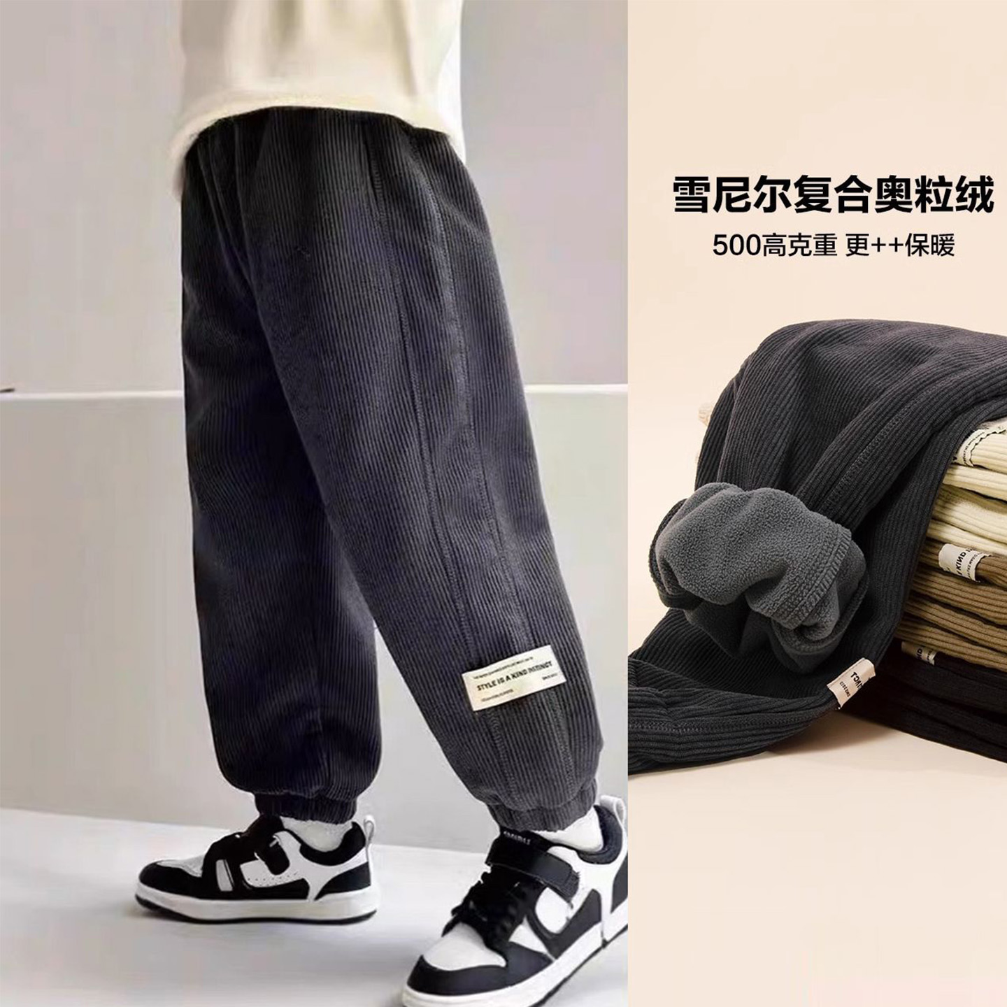 童装男童加绒裤子秋冬季2025新款男孩休闲裤儿童一体绒灯芯绒长裤