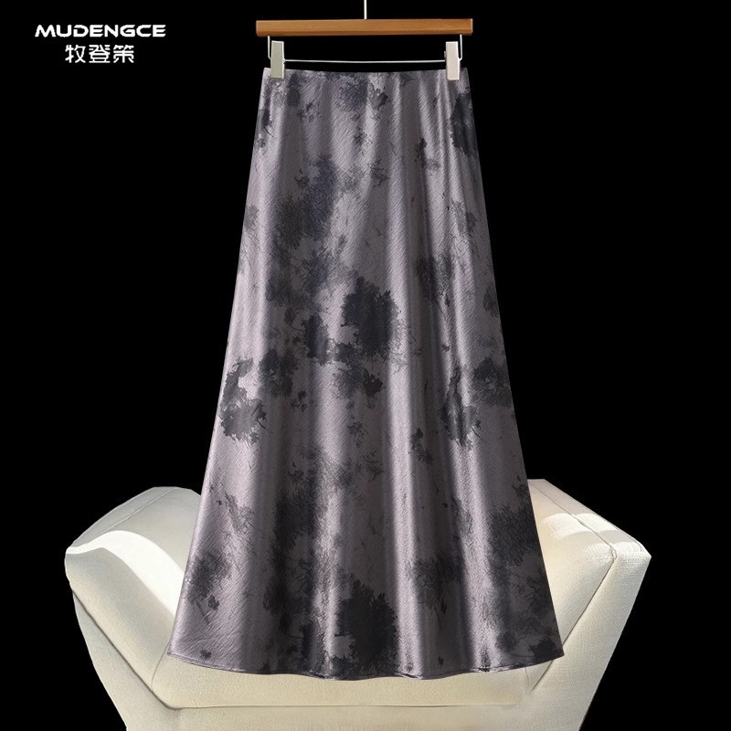 高级感国风半身裙女2025春夏新款水墨印花气质高腰裙中长款A字裙