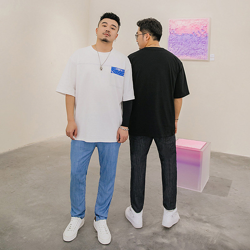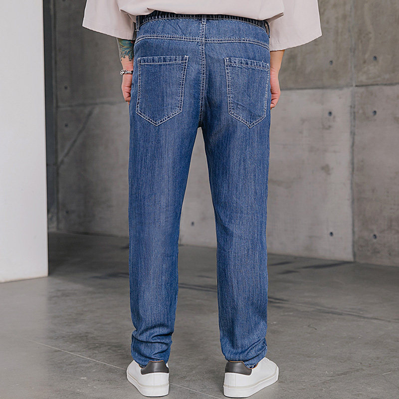 韦恩泽维尔加肥加大休闲宽松大码天丝薄款小直筒牛仔长裤男6919