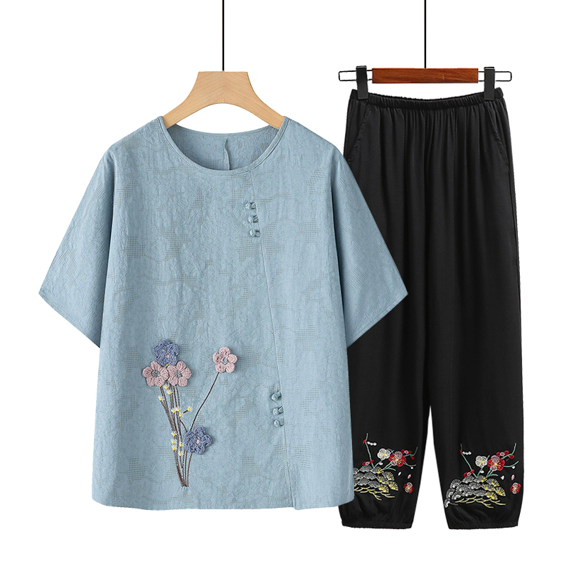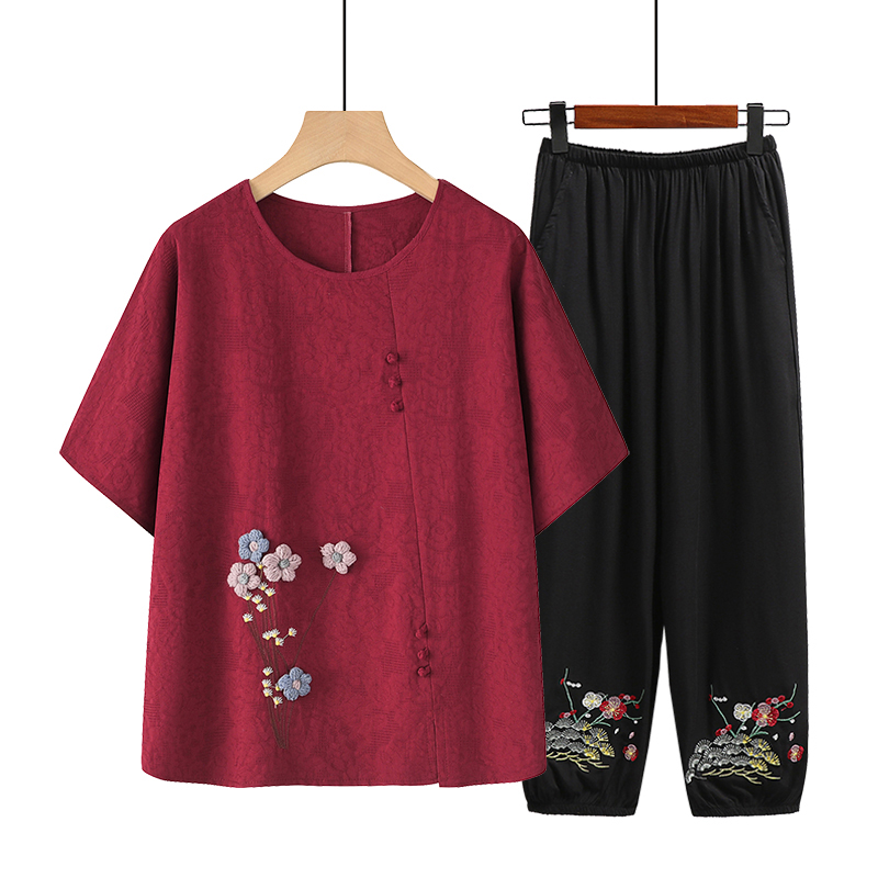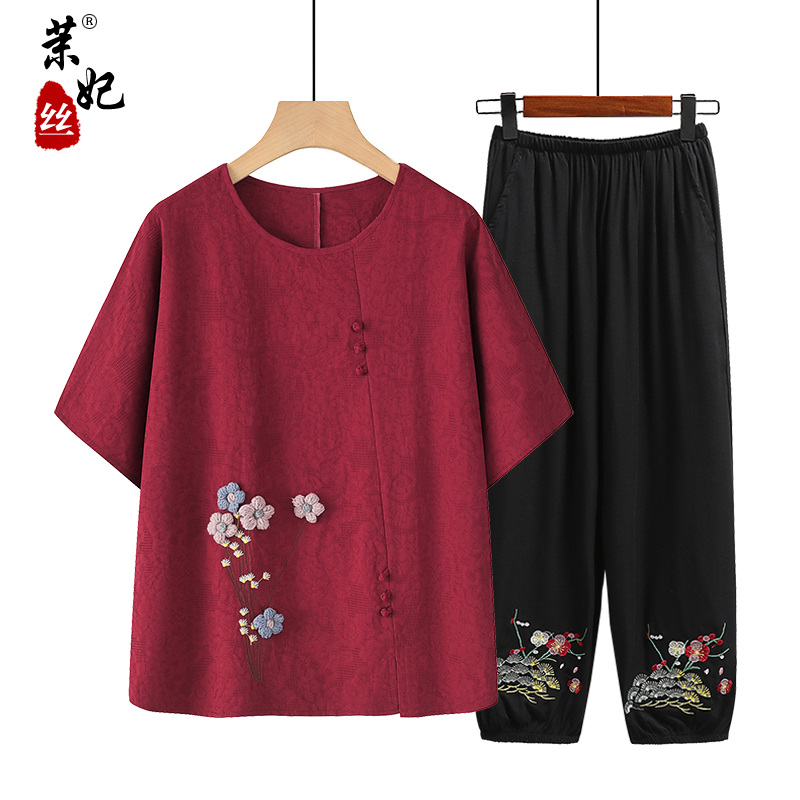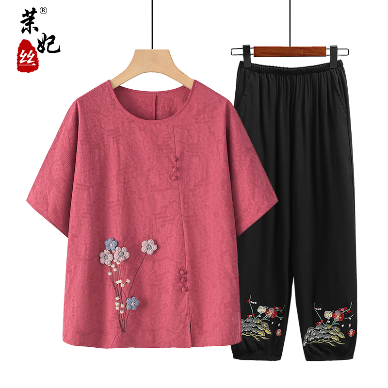 妈妈夏装中老年人奶奶短袖套装女大码夏季T恤老人老太太衣服上衣