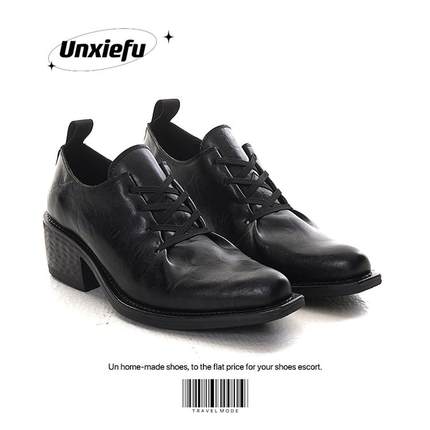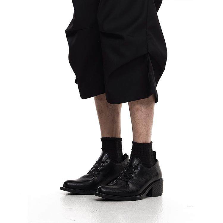 头层马皮暗黑低帮高跟巫师鞋男女