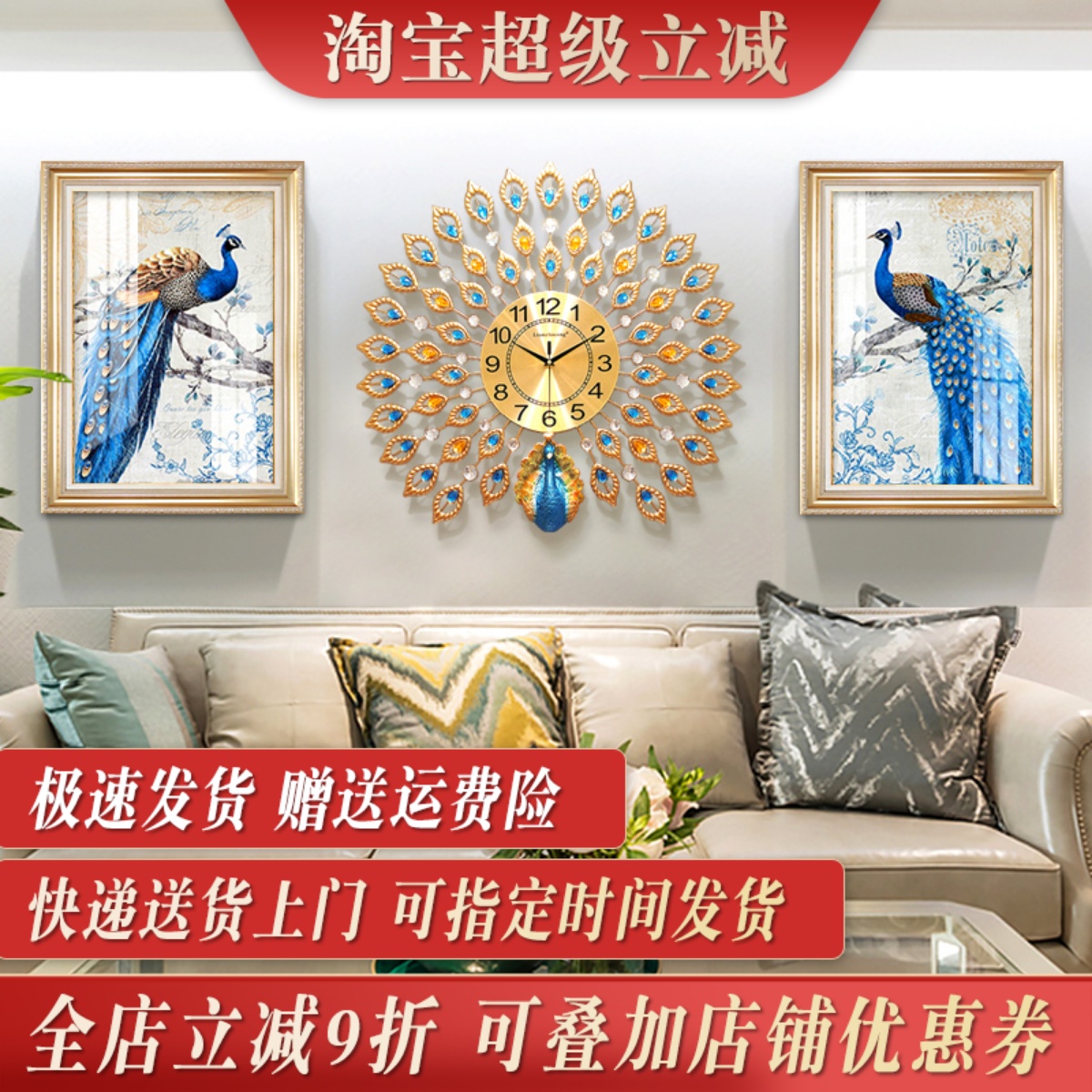 欧式客厅装饰画轻奢大气沙发背景墙壁画餐厅大厅孔雀简欧风格挂画