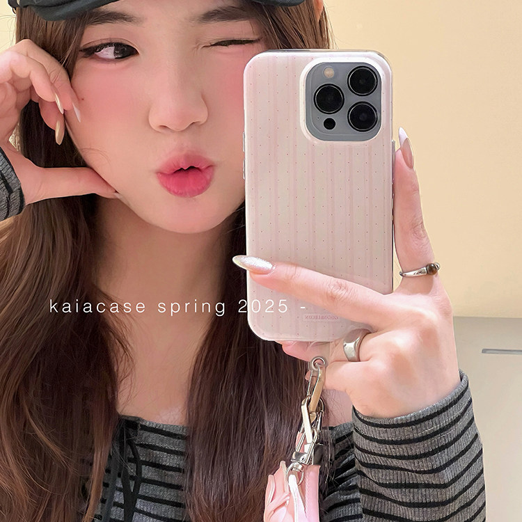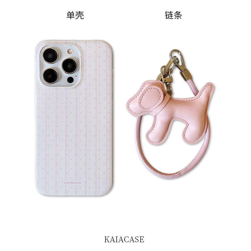 kaia 小众ins甜妹粉色波点竖纹狗狗适用苹果16promax手机壳iphone13新款15女14pro带挂绳16pro全包防摔手机套