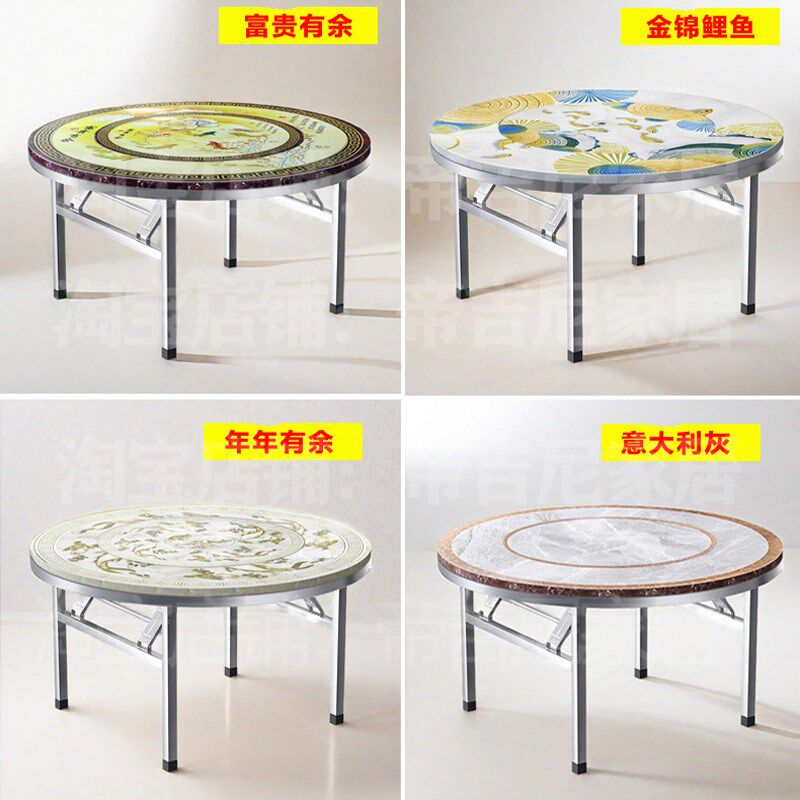 不锈钢内置转盘彩图圆桌加厚食品级可折叠免安装餐桌酒席食堂饭桌