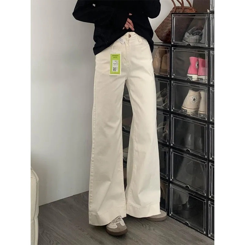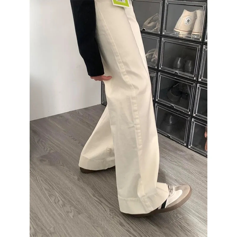 145小个子白色牛仔裤女港风复古高腰显瘦宽松不贴腿微喇叭阔腿裤