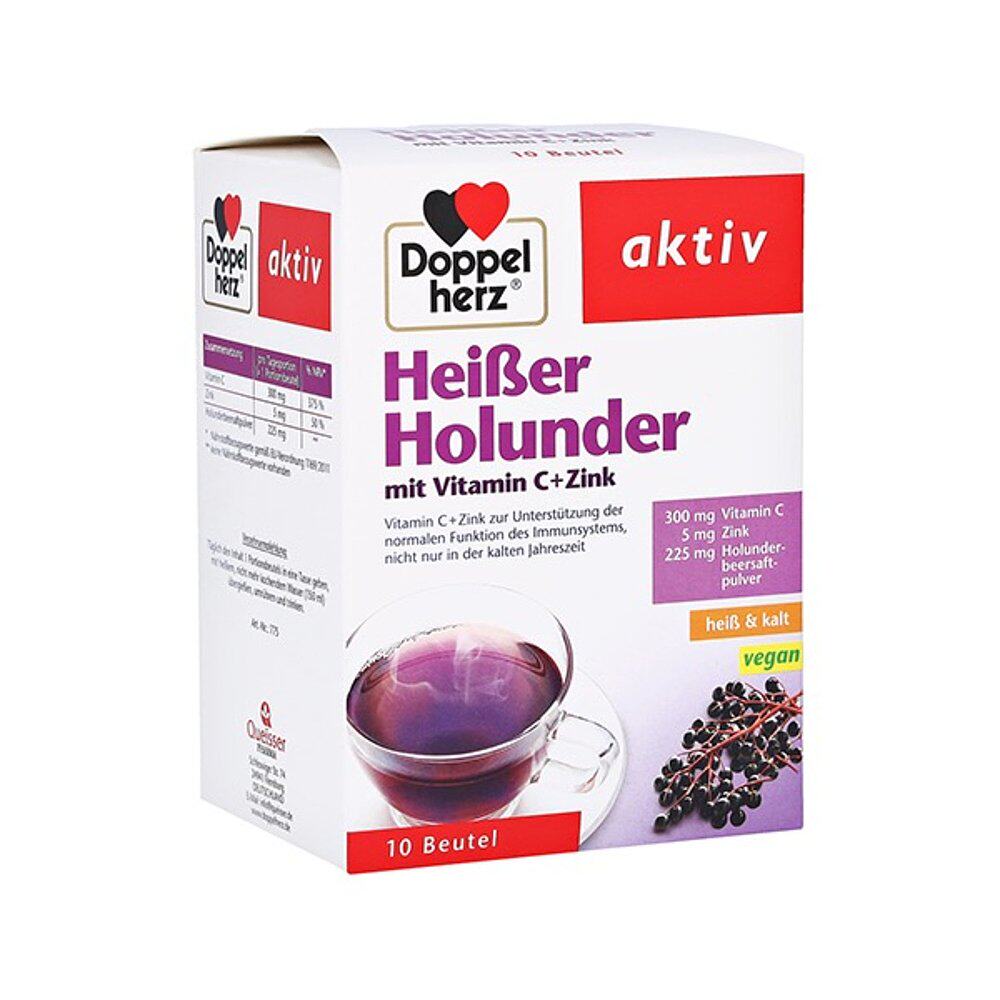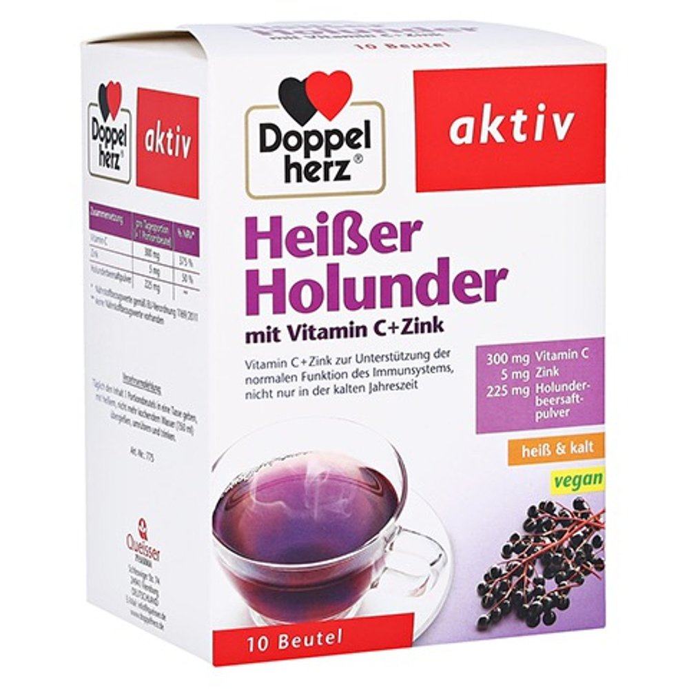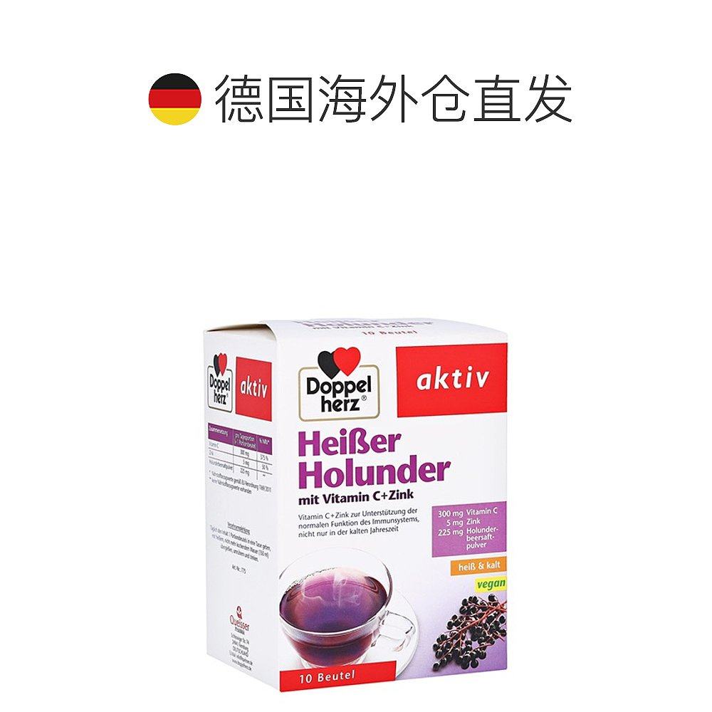 欧洲直邮德国双心Doppelherz补充vc+锌热饮接骨木维C+锌热饮10粒