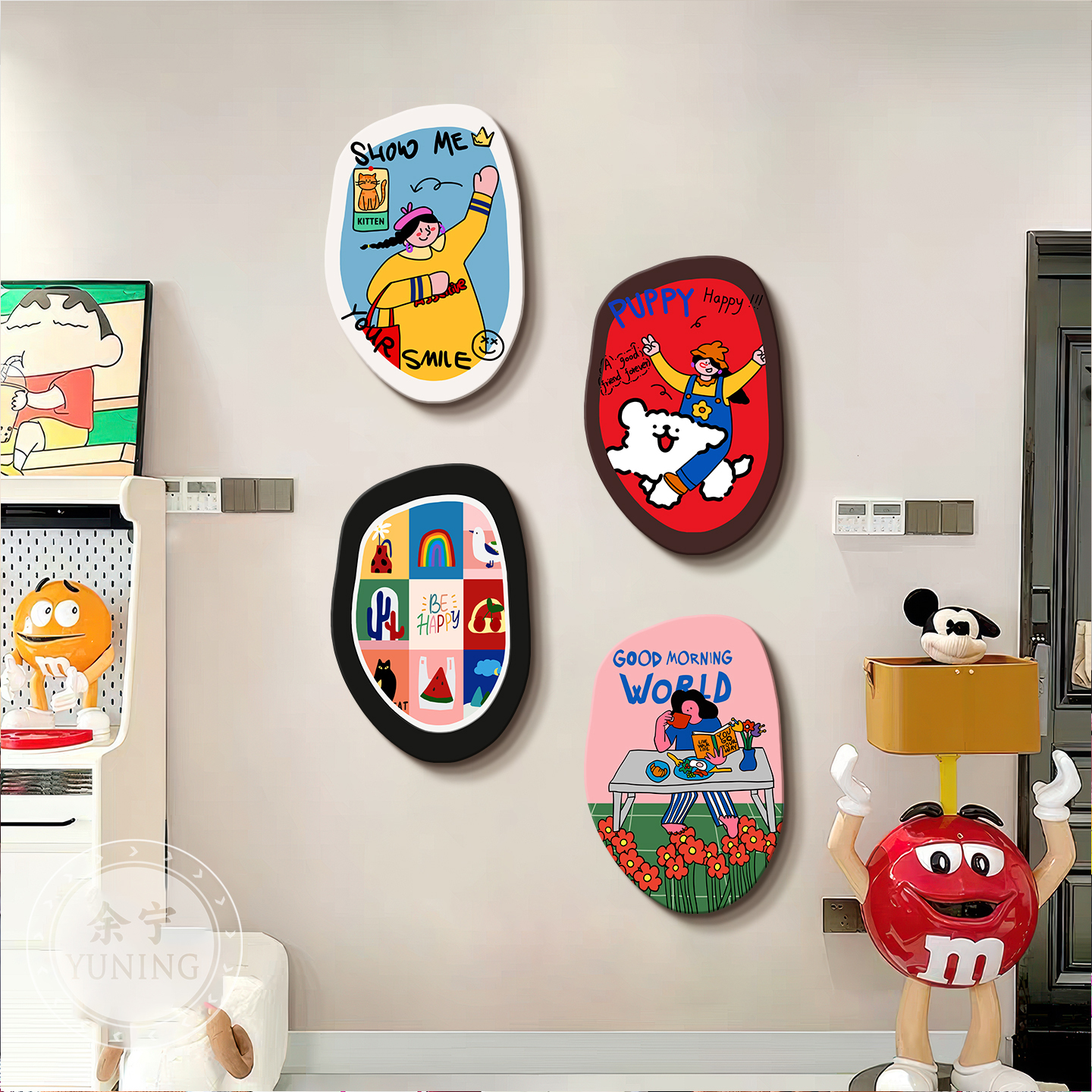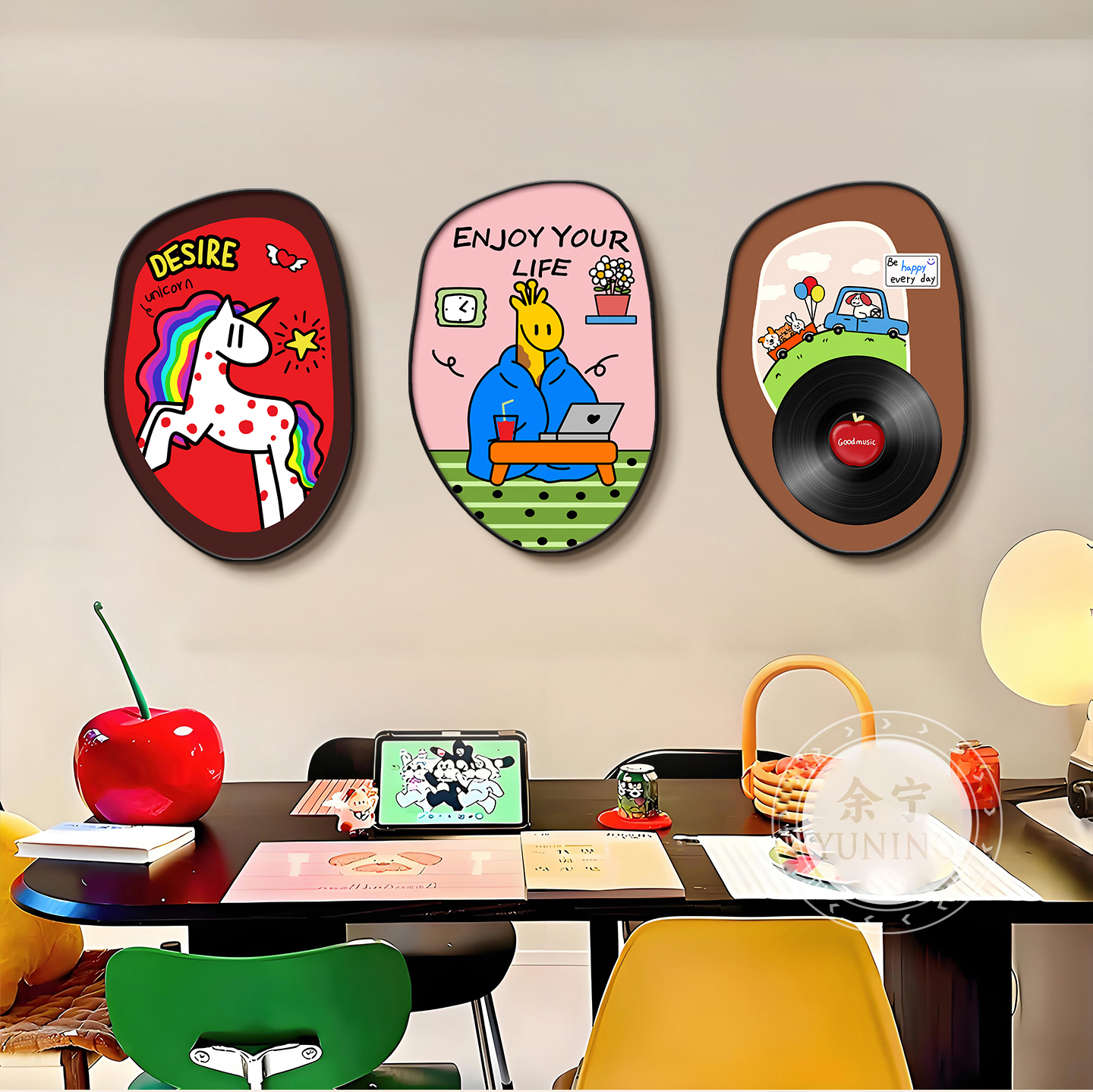多巴胺卡通客厅沙发背景墙装饰画儿童房玄关挂画趣味餐厅组合壁画