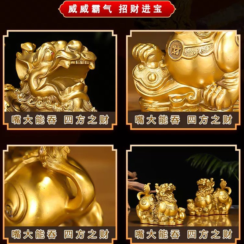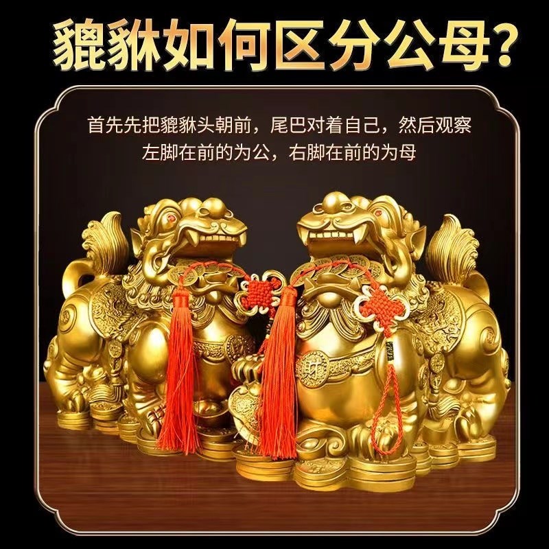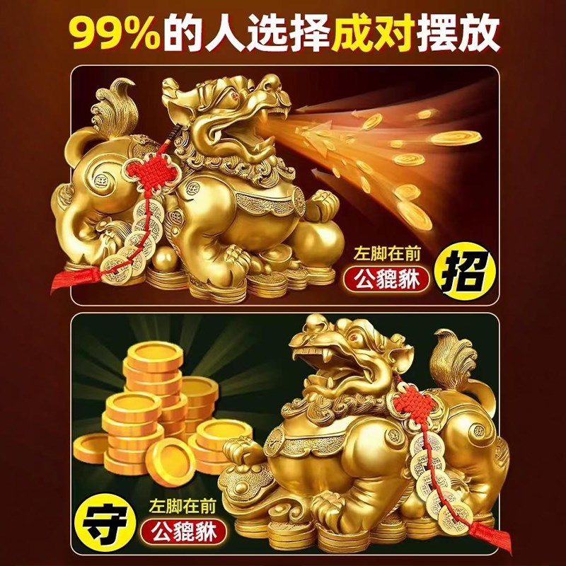 铜貔貅摆件一对公母全黄铜貔恘皮丘客厅店铺装饰品办公室开业招财