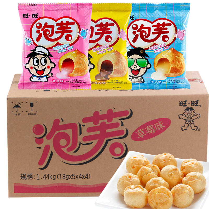 旺旺泡芙牛奶味80袋整箱巧克力味草莓味儿童小零食批发糕点泡芙球