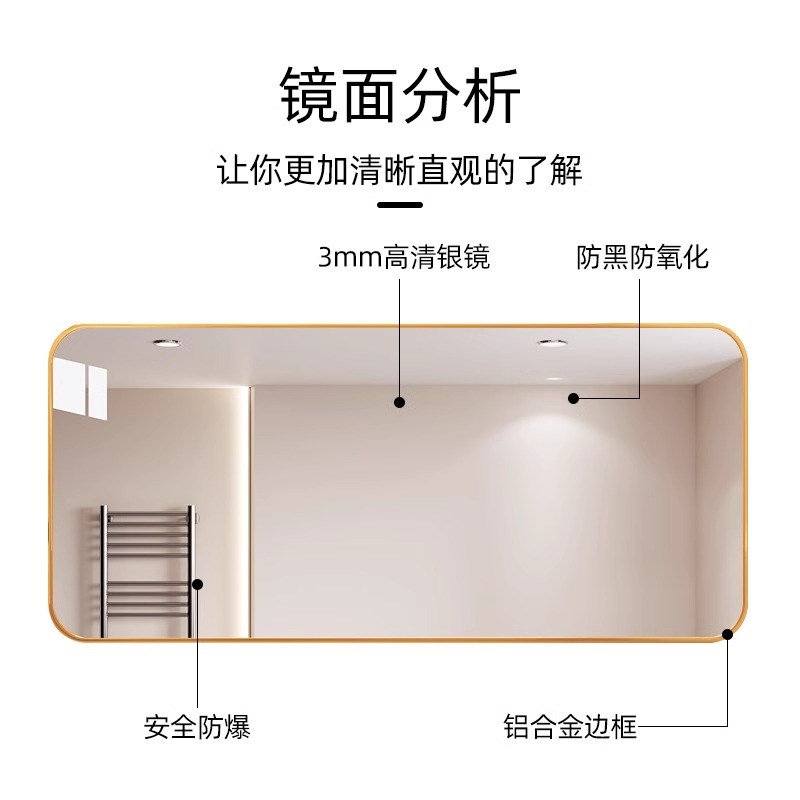 卫生间镜子贴墙自粘厕所洗面台洗手盆上面不怕水的防雾方形浴室镜