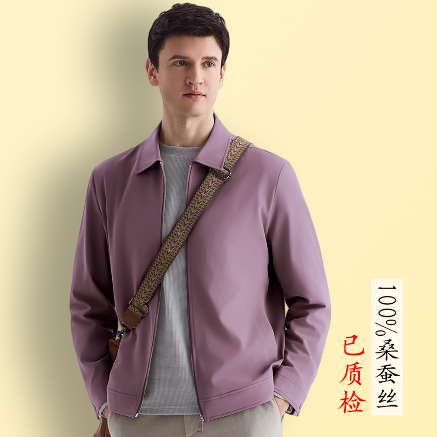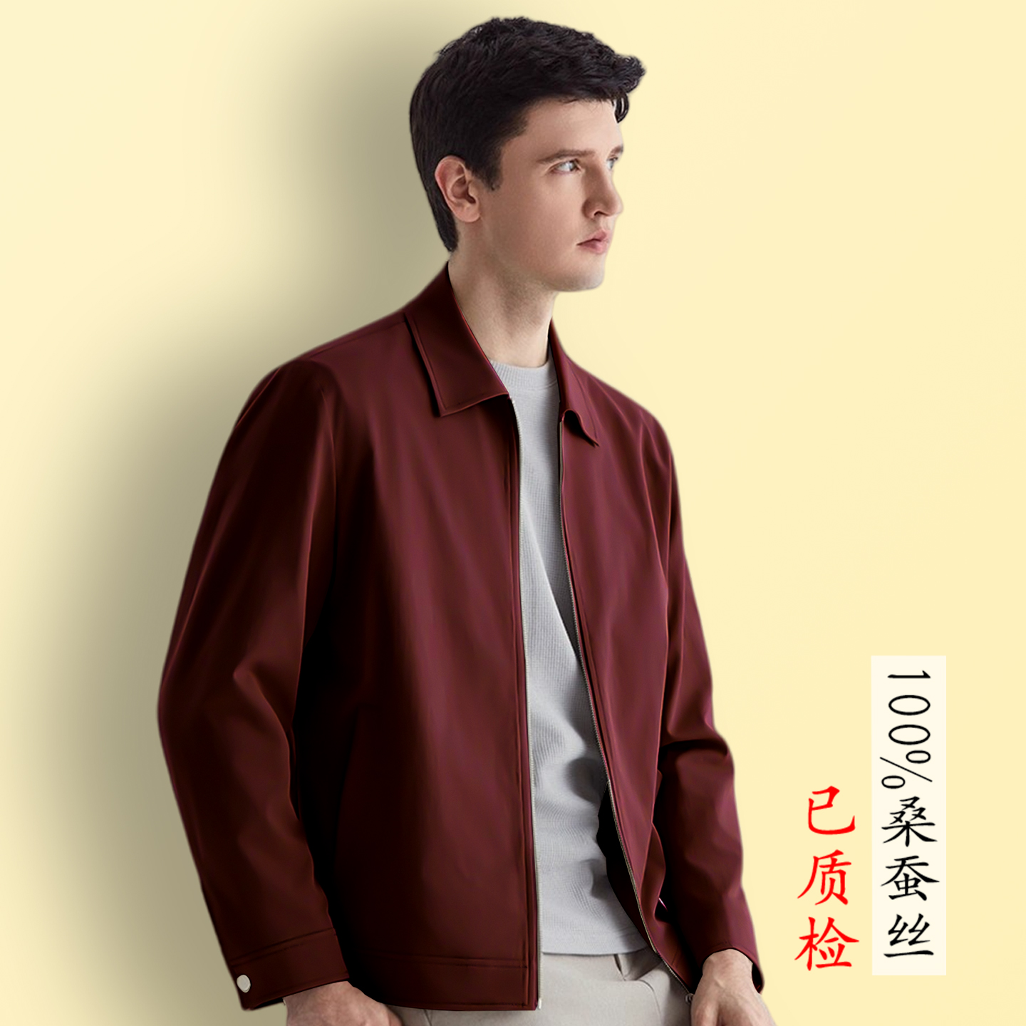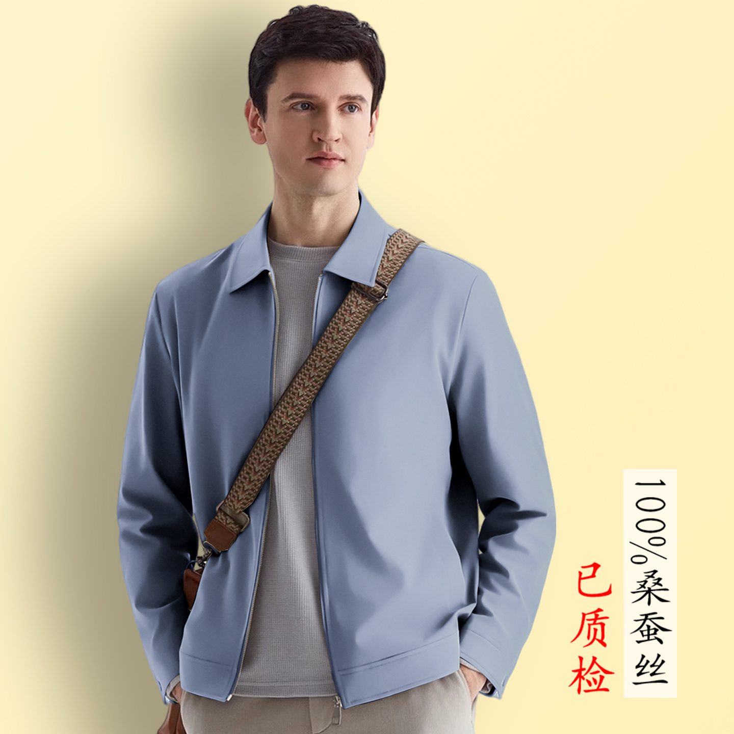 100%纯桑蚕丝】翻领夹克男春秋款商务休闲行政通勤外套免烫新款