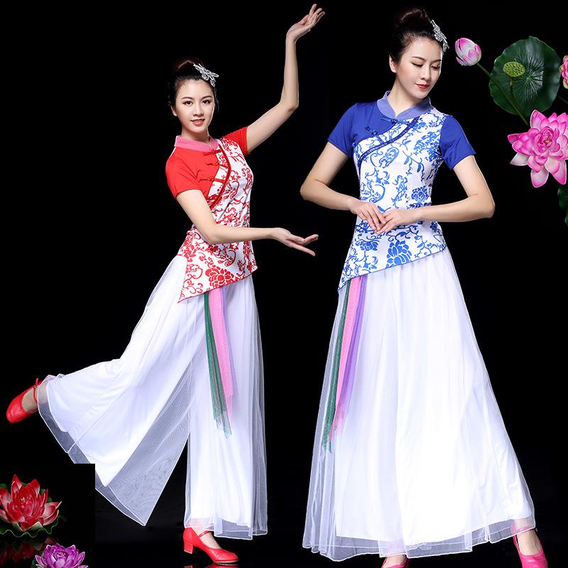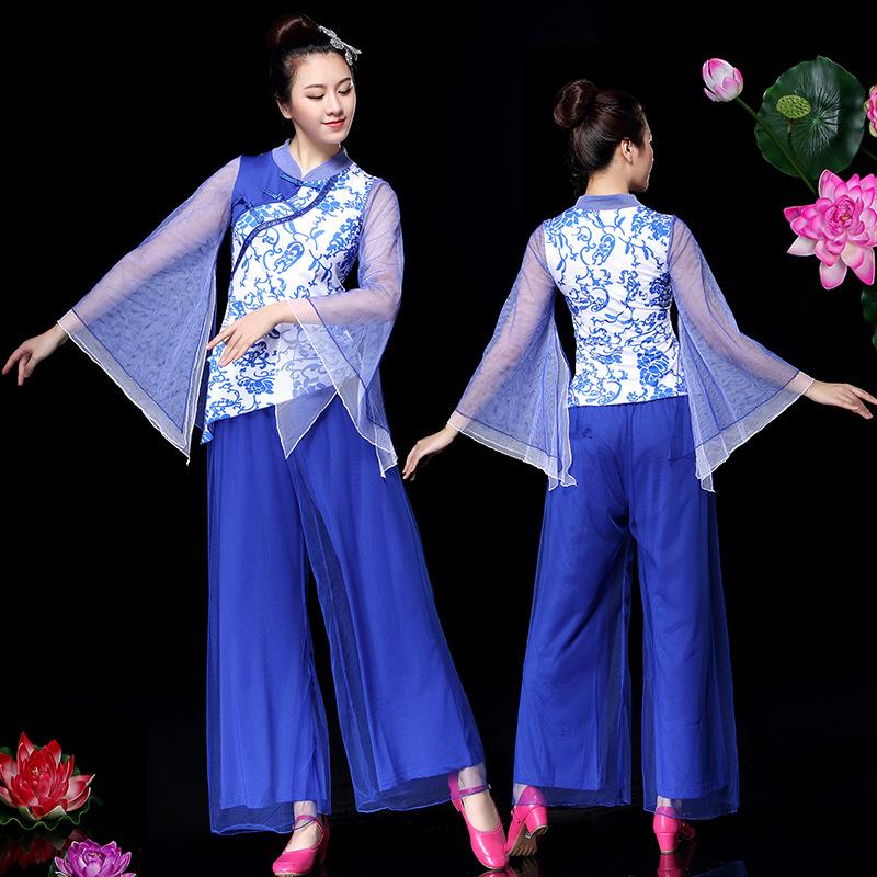 新款新款杨丽萍广场舞服装套装女春夏网纱袖裙子裤青花瓷民族风表