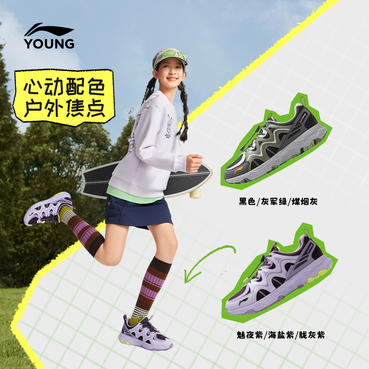 李宁儿童防泼水户外跑步鞋童羚羊