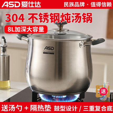 爱仕达304不锈钢汤锅家用大容量加厚电磁炉通用煮粥熬汤炖鸡锅