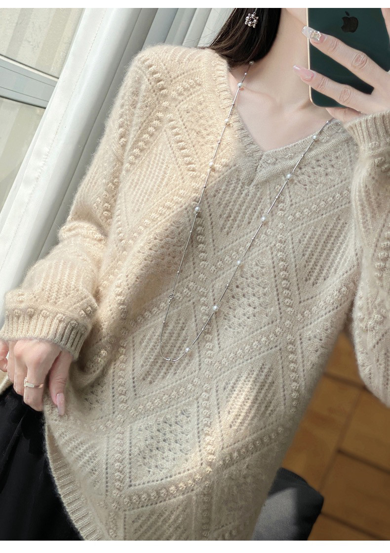 V领羊毛衫女2024秋冬宽松慵懒鸡心领套头毛衣百搭针织打底衫