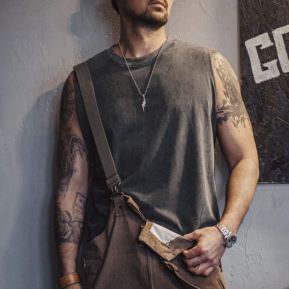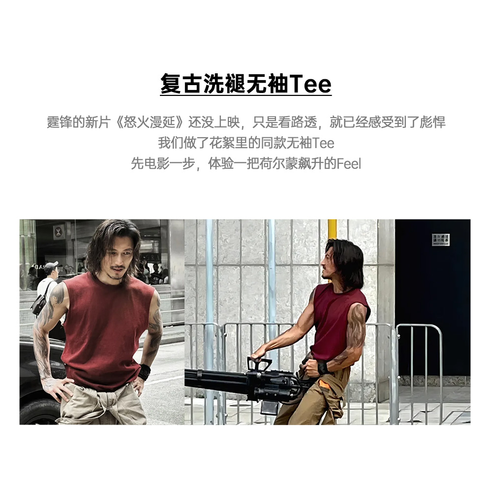 马登工装美式红色背心痞帅潮流外穿纯棉健身坎肩砍袖无袖T恤男夏
