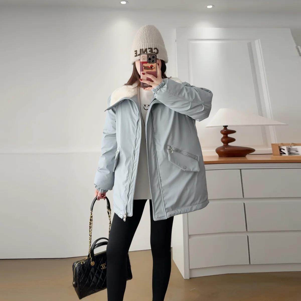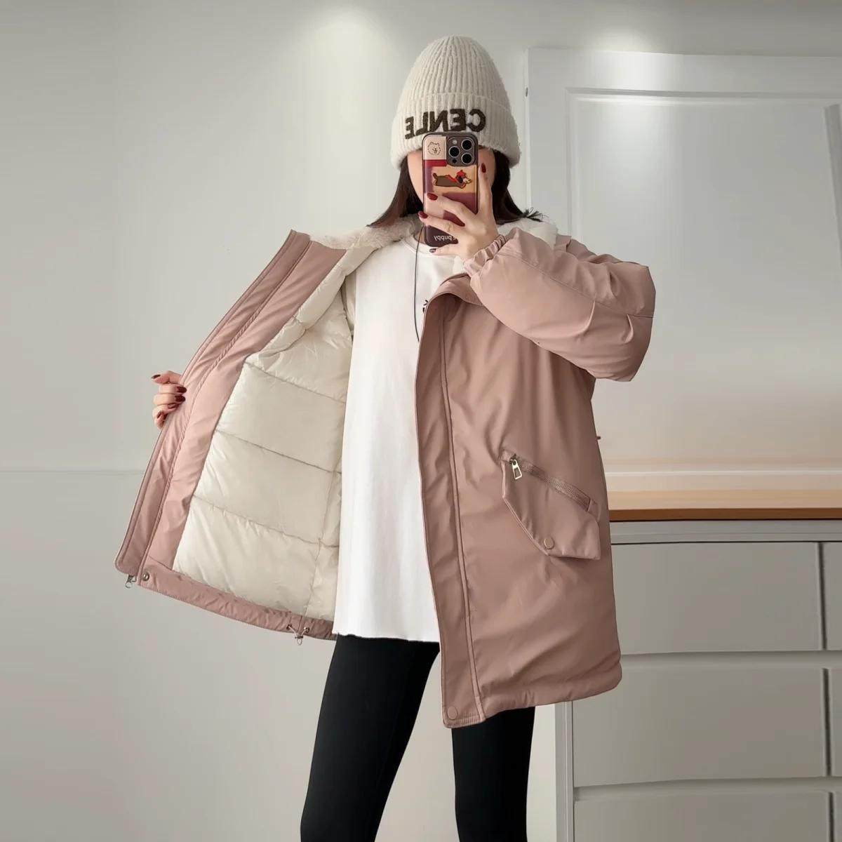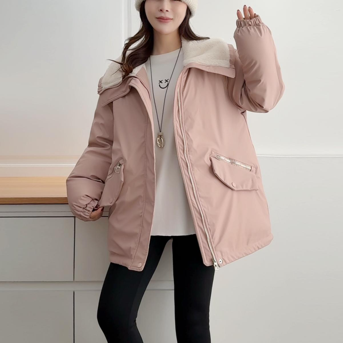 2025胖mm大码女装冬装纯色毛毛翻领中年中长款加厚棉袄派克女棉衣
