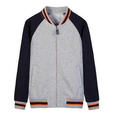 伊顿纪德棒球服男女棉毛布螺纹立领浅灰色运动套装运动裤17y056s