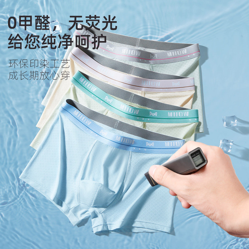 猫人青少年内裤男发育期学生高中生冰丝裸感透气四角短裤2025新款
