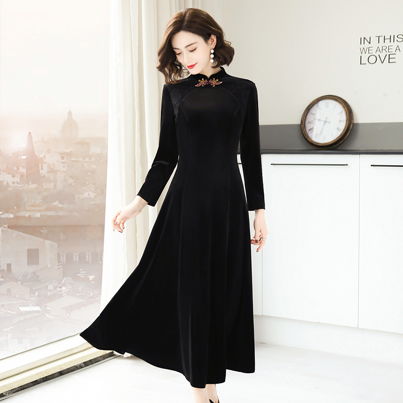 大摆金丝绒婚宴喜婆婆旗袍裙大码