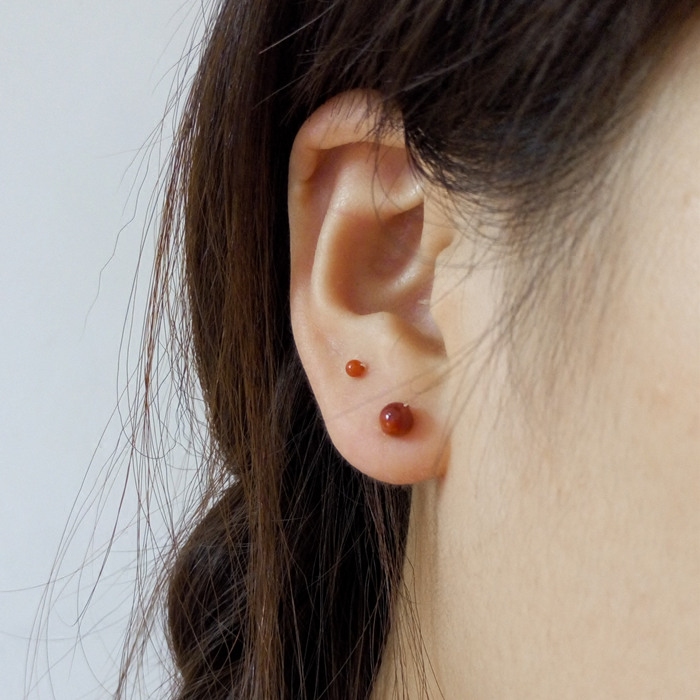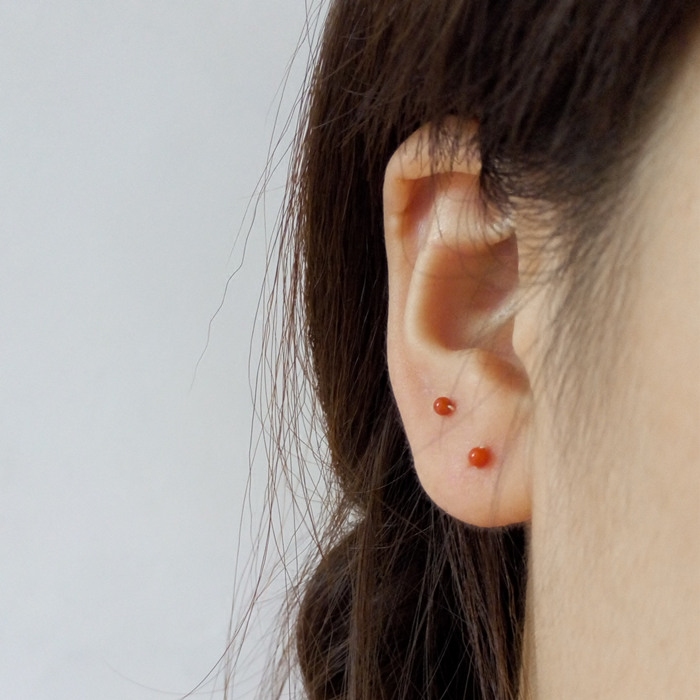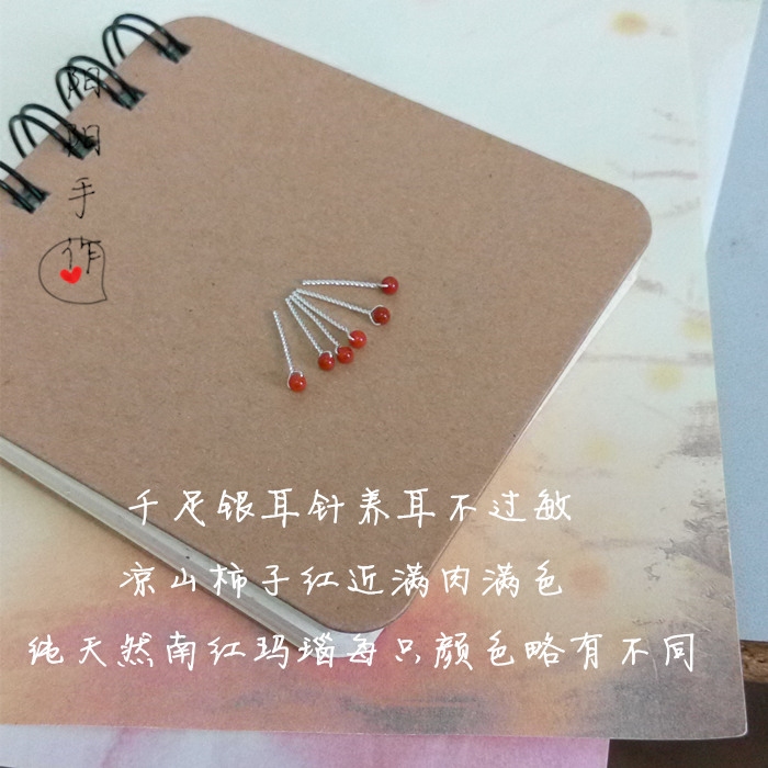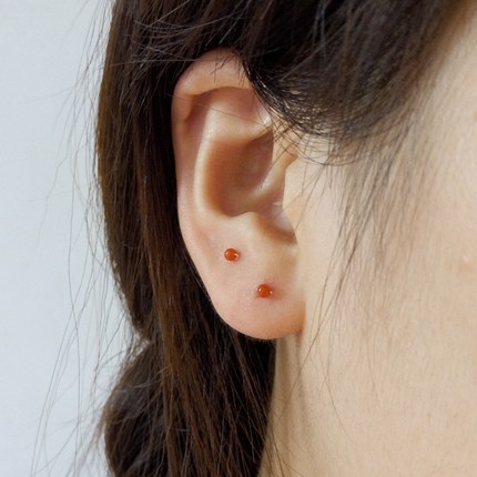 极小2mm天然凉山柿子南红玛瑙小耳钉足银999纯银耳骨钉养耳不过敏