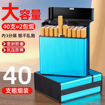 超大容量40支装烟盒便携式自动弹烟粗支中支通用卷烟套保护盒抗压