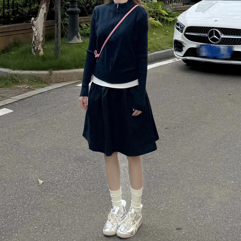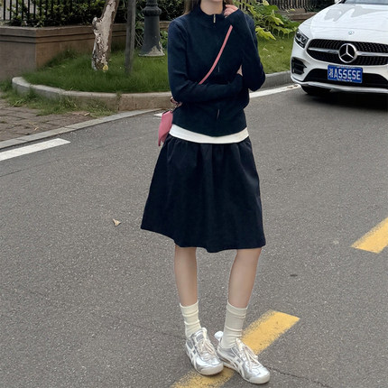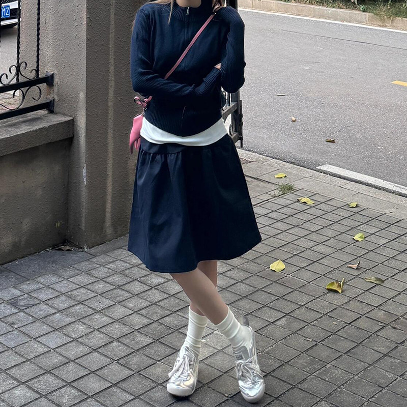 藏青色半身裙满满的日系青春感!