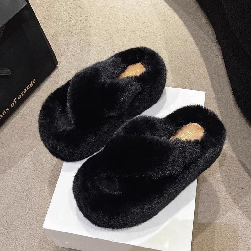 小个子增高厚底毛毛茸茸拖鞋外穿