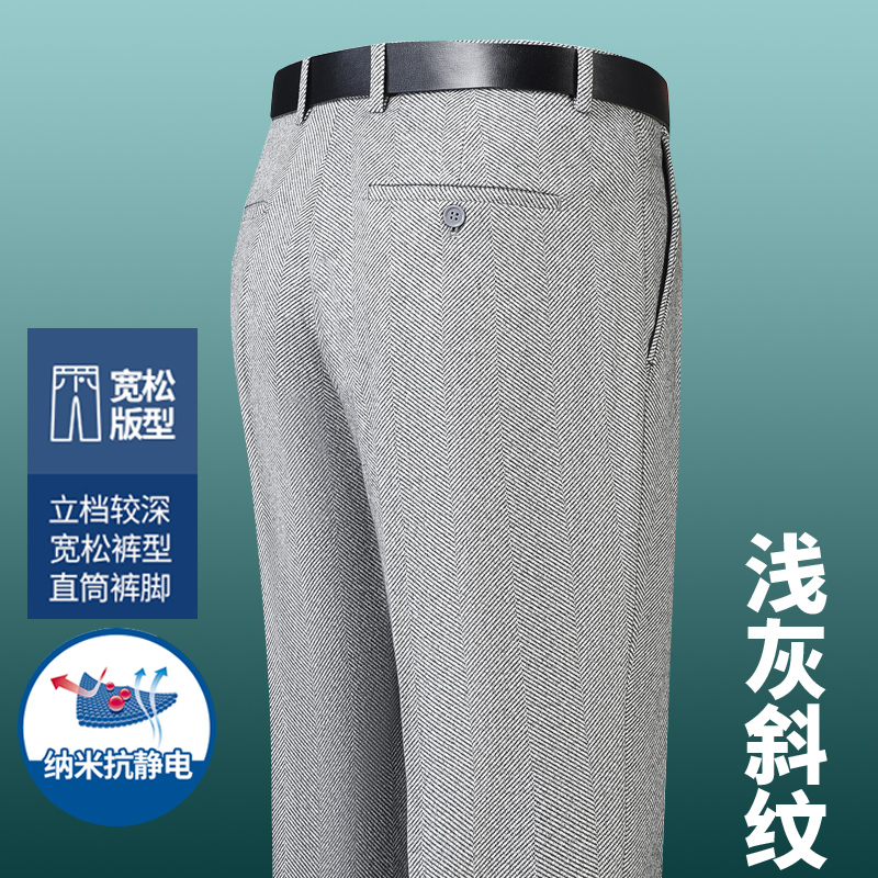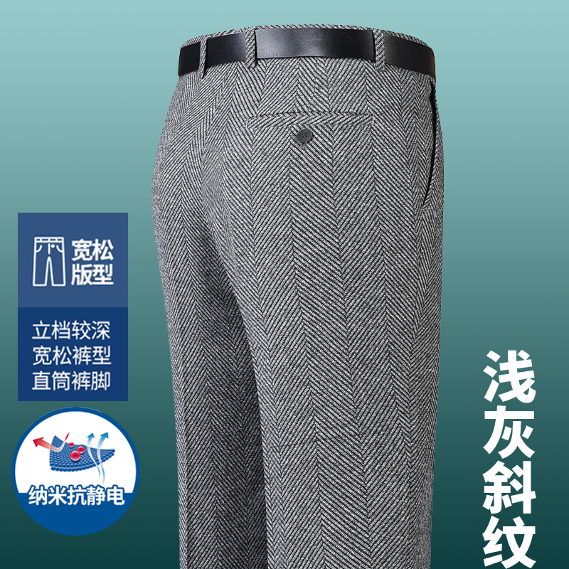老爷车羊毛男士西裤商务免烫上班西装中老年秋冬厚款宽松爸爸男裤