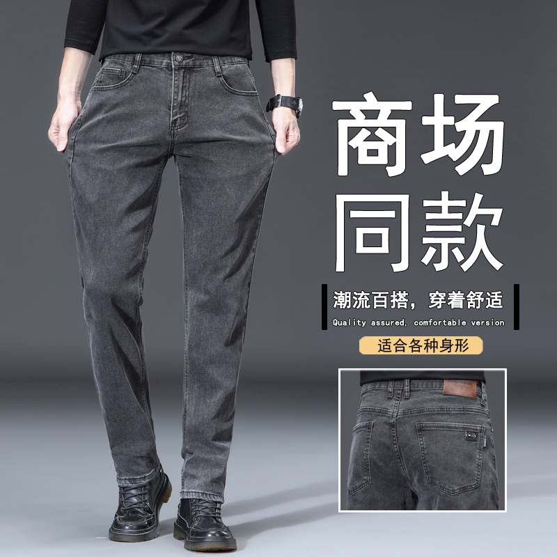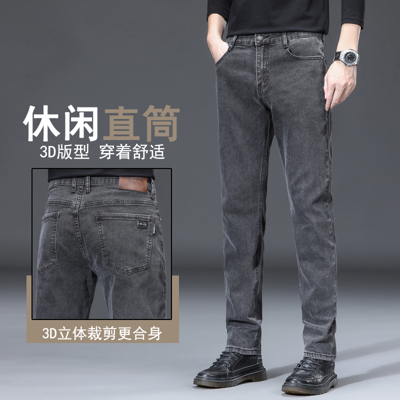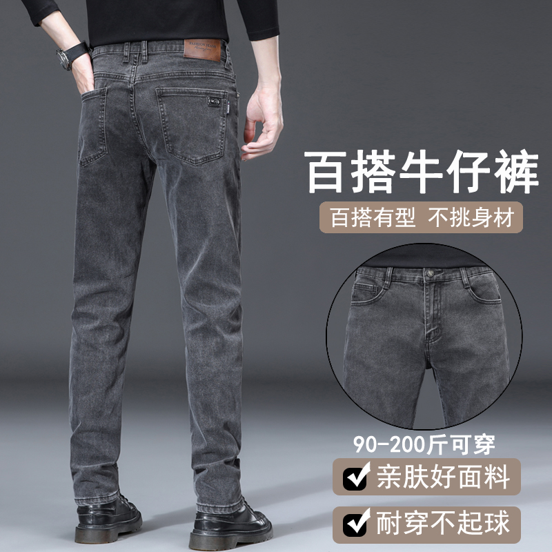 秋冬季直筒宽松弹力男士牛仔裤大码休闲长裤子耐磨工地干活工作裤