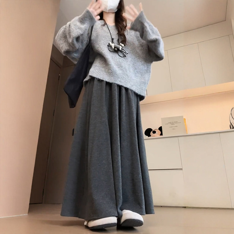 深灰色针织糯米裤裙胖mm大码春季半身裙裤垂坠感软糯小个子阔腿裤