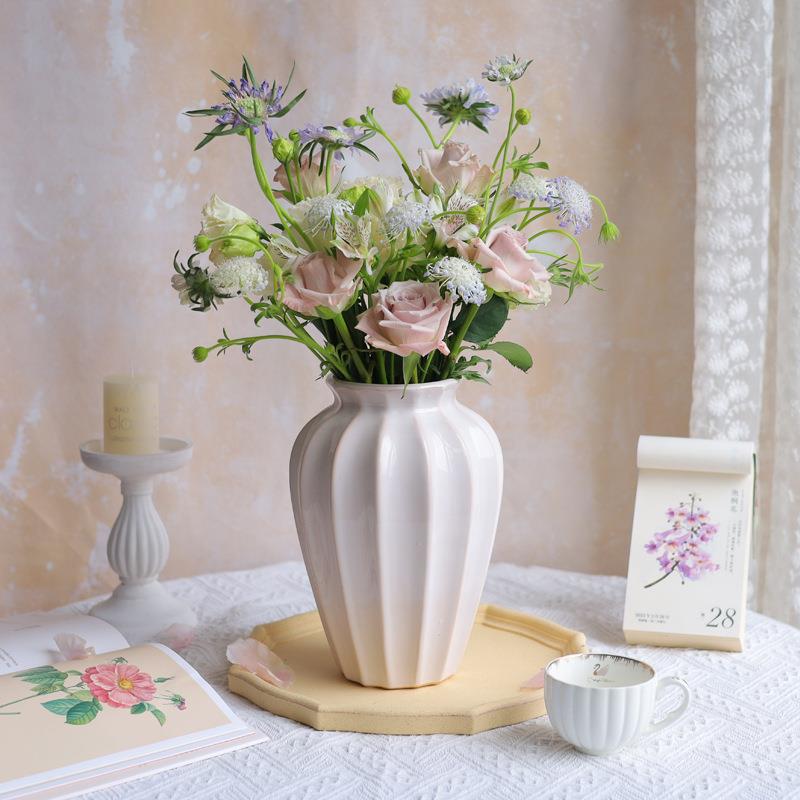 北欧创意花瓶陶瓷束口条纹现代简约摆件装饰品家居花瓶水培摆件