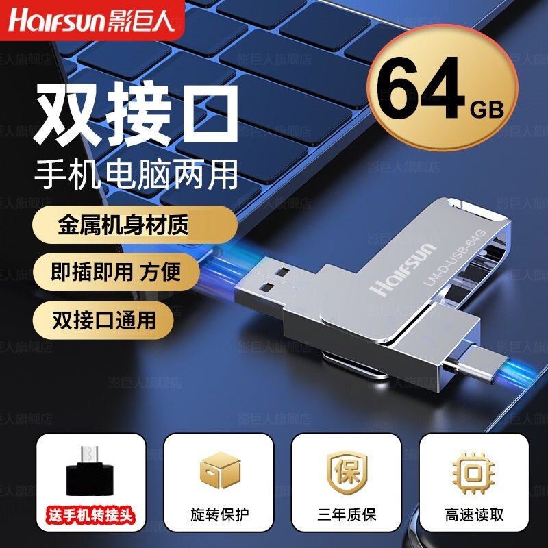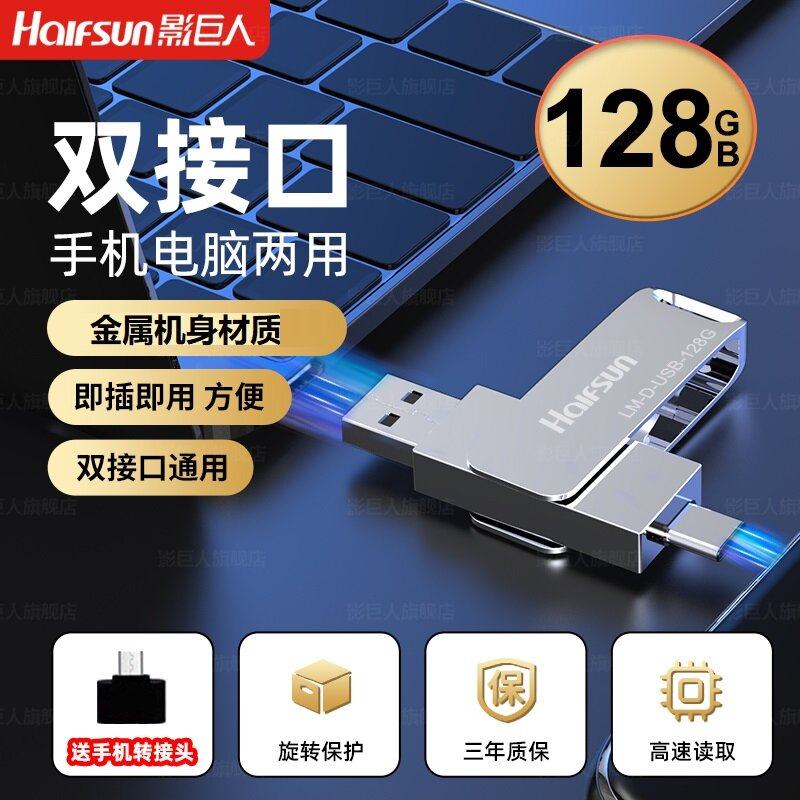 影巨人正品u盘128g大容量64g金属优盘32g手机电脑车载二合一通用