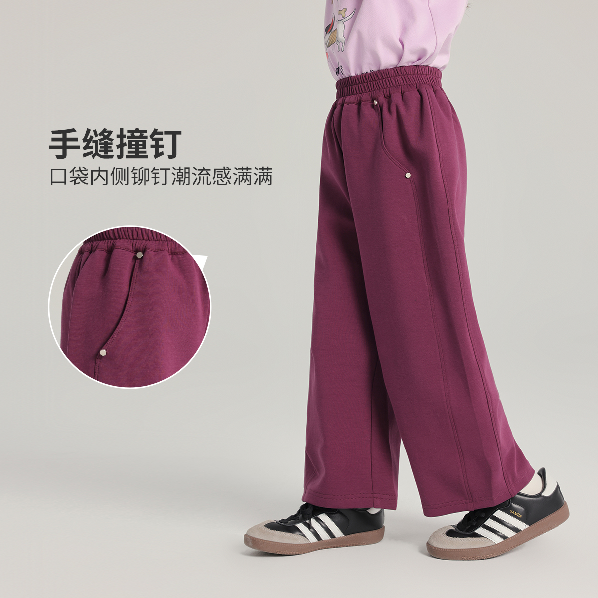 布丁哈鲁春装女童直筒裤子2025春秋新款儿童休闲百搭撞钉长裤
