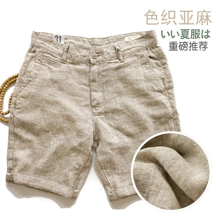日系薄款亚麻风 五分裤中裤休闲裤麻裤 棉麻纯色麻棉短裤男士夏季