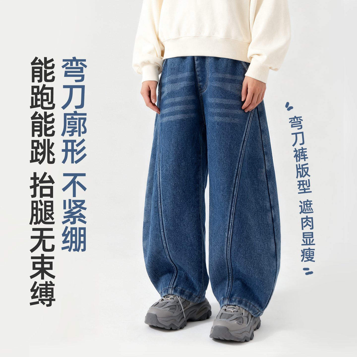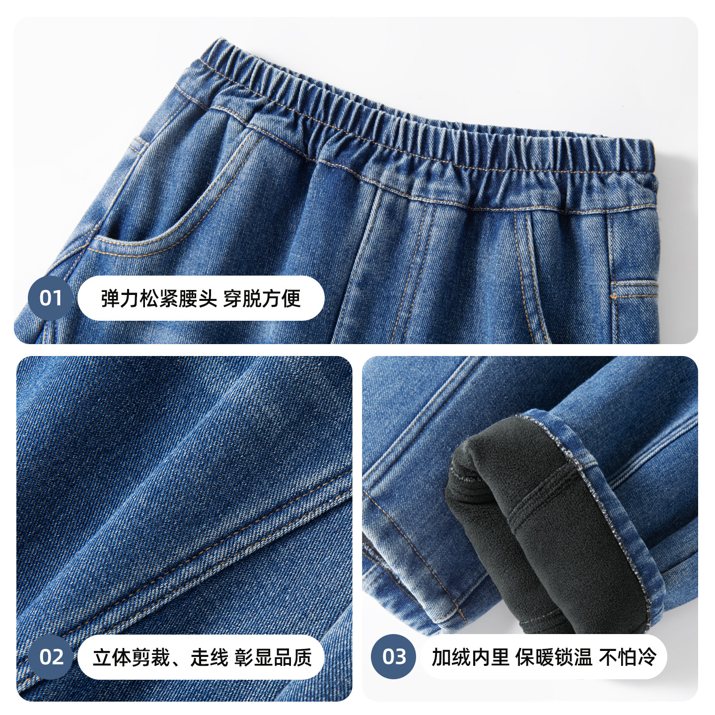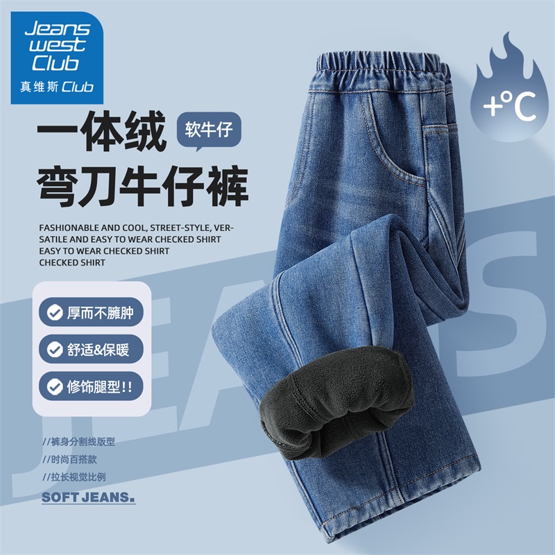 真维斯club男童牛仔裤2025新款儿童秋冬加绒弯刀裤男孩宽松裤子冬