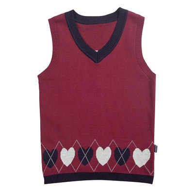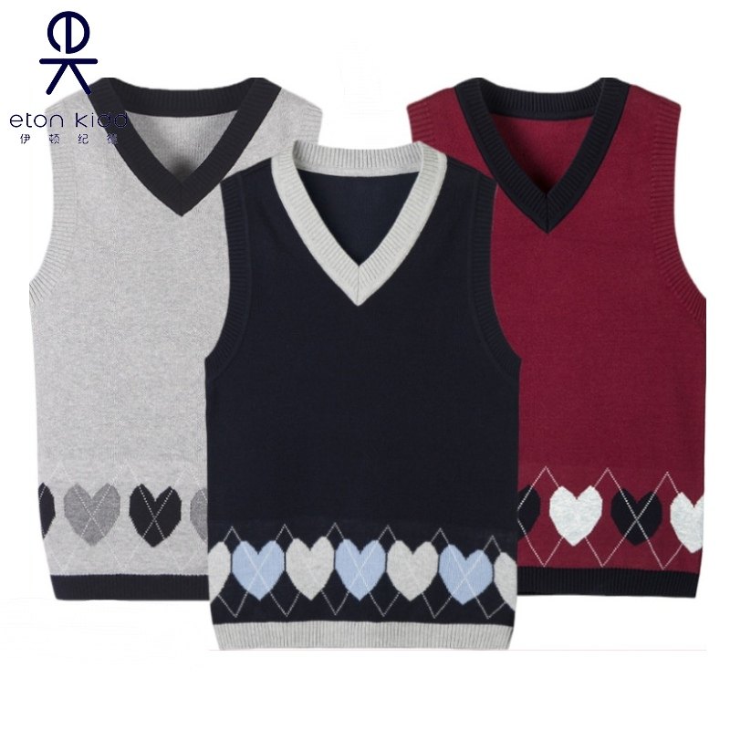 伊顿纪德校服女童针织背心儿童V领毛衣马甲菱格15B205/6/7惠