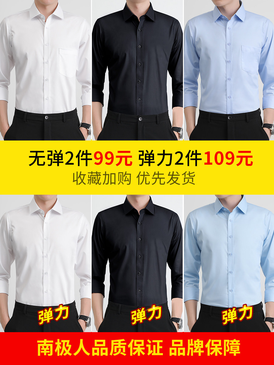 春季白色衬衫男士长袖免烫商务正装职业休闲工装加绒保暖衬衣黑寸