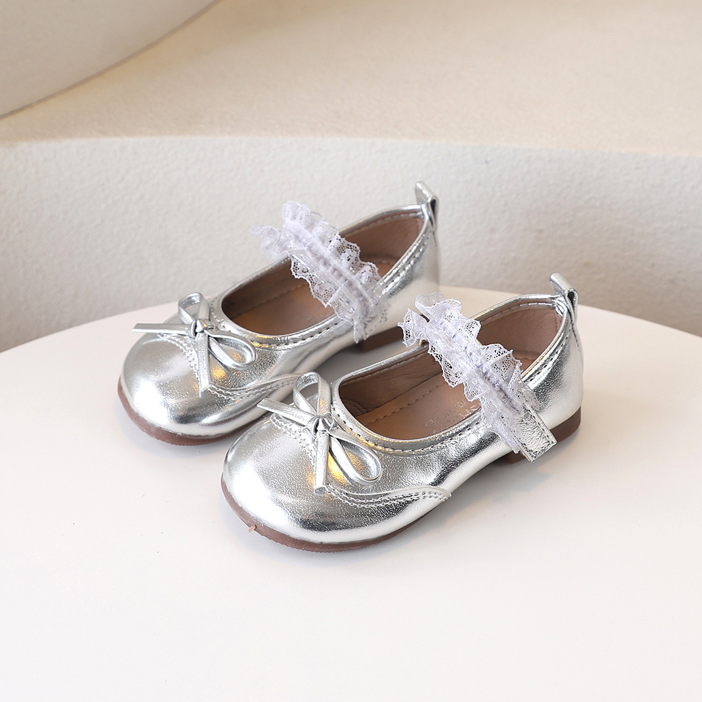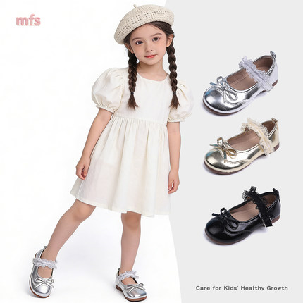 女童甜美花边蝴蝶结小皮鞋2026春季新款韩版小香时尚百搭公主单鞋